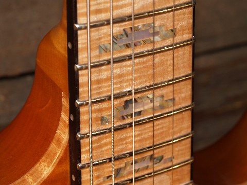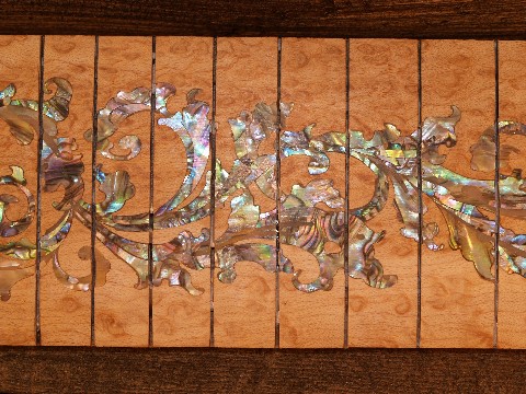 | ABOUT THE FINGERBOARDS Zuni Guitar fingerboards are built with four different species of woods. Very high grade Birdseye Maple, Curly Hard Maple, Ebony and Brazilian Rose Wood. We have two basic designs of Zuni inlays which are made from abalone and mother of pearl. Two exhibition inlays are also available and custom designs can be had. The finish and feel of Zuni fingerboards with their exceptional workmanship will be a feeling that all guitar players will know and enjoy. Great experience and knowledge goes into finishing these fingerboards. |